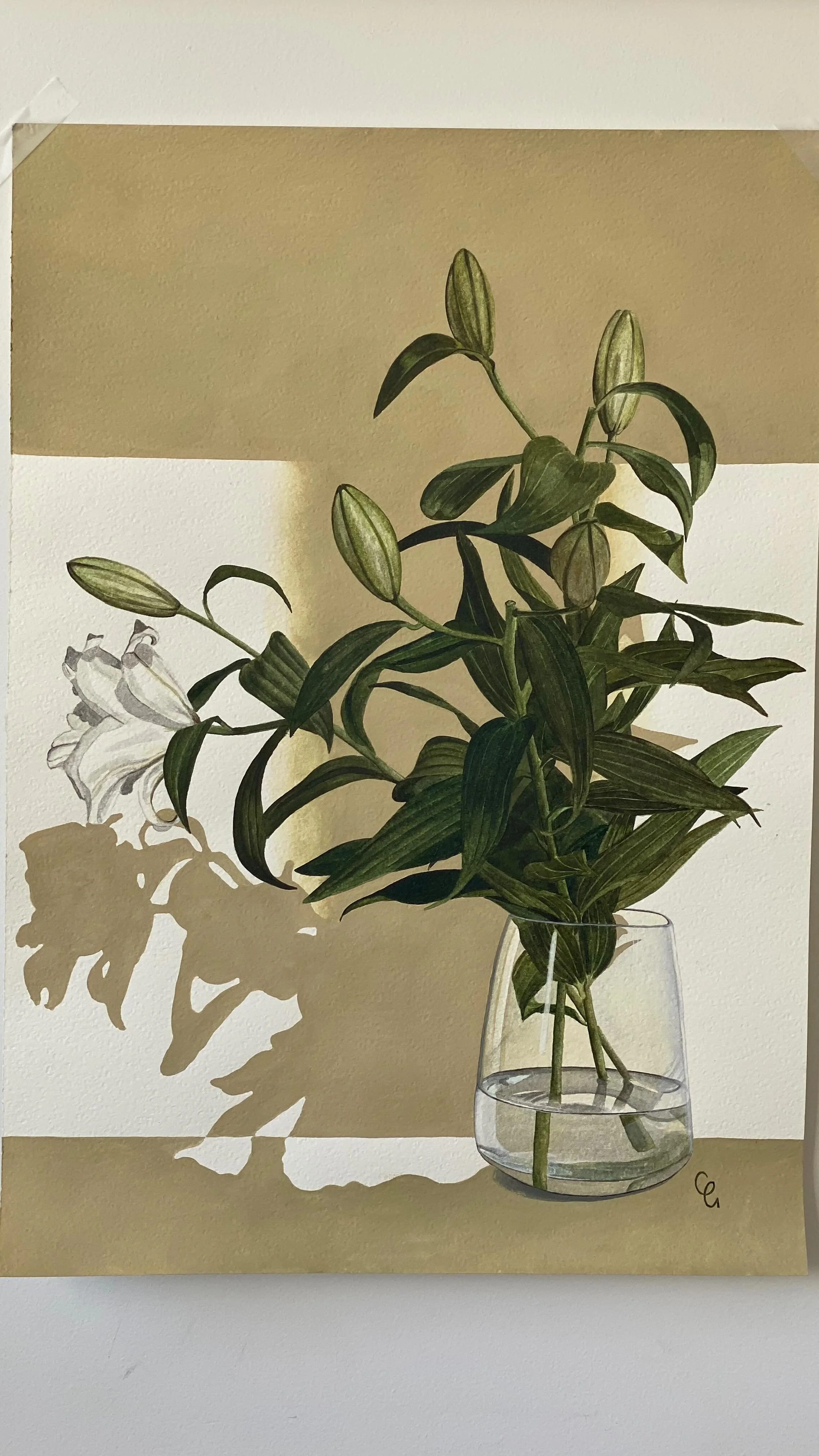 #contemporaryartist #contemporaryart #green #lilies #iris #womenartists #originalart #floralart #northernbeachesartist #botanicalpainting #bringtheoutsidein #cassiegriceart #artforyourhome #wate